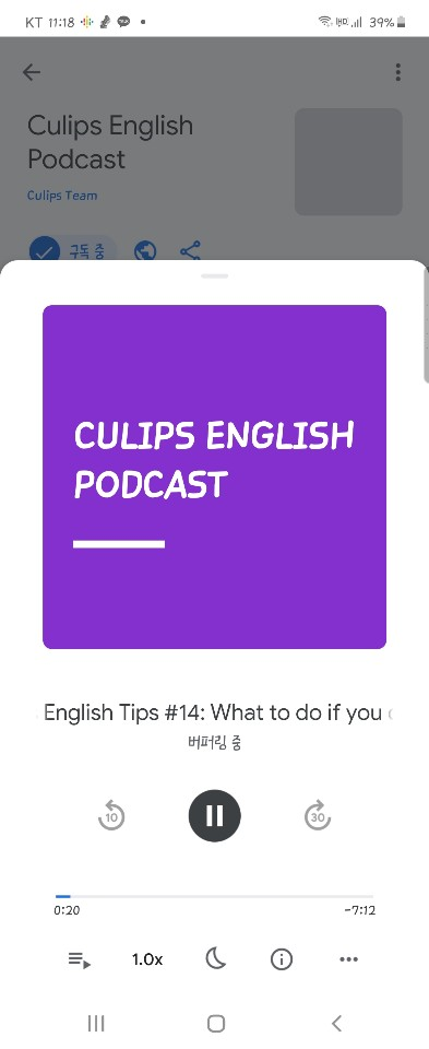 : Drill을 누르면, 영어/한글 자막없이 소리에 집중할 수 있다.