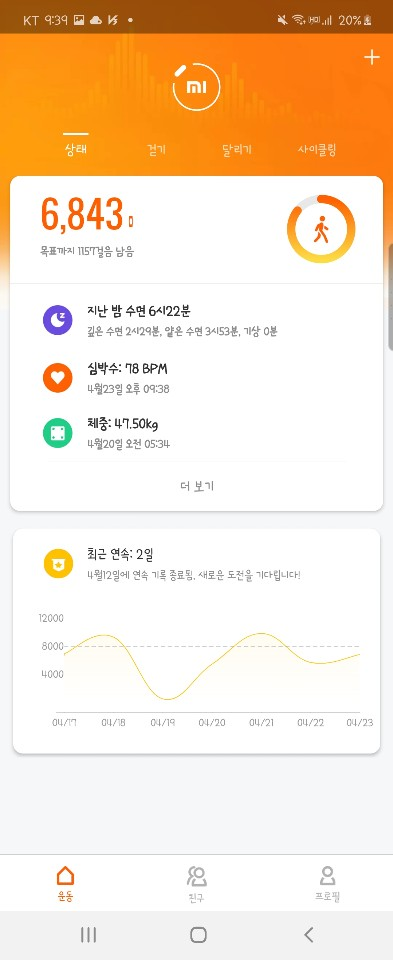 Mi Fit 어플을 설치하고, 블루투스로 내 미 밴드 4와 기기 연결을 한 다음